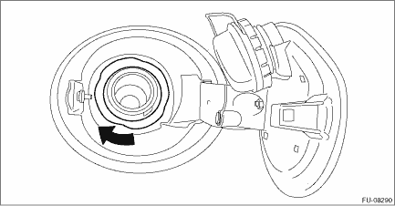 WARNING: Place “NO OPEN FLAMES” signs near the working area. CAUTION: Be careful not to spill fuel. 1. Release the fuel pressure. Fuel > PROCEDURE 2. Drain fuel. Fuel > PROCEDURE 3. Open the fuel filler lid and remove the fuel filler cap. 4. Turn the fuel filler pipe protector in the direction of the arrow to unlock and remove it.