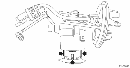 6. Release three claws on the fuel pump holder from the fuel chamber assembly, and raise the fuel filter assembly.