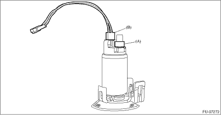 WARNING: Place “NO OPEN FLAMES” signs near the working area. CAUTION: • Be careful not to spill fuel. • If the fuel gauge indicates that two thirds or more of the fuel is remaining, be sure to drain fuel before starting work to avoid the fuel to spill. • Be careful not to drop or apply any impact to the fuel pump during work. This may deteriorate its performance. NOTE: The fuel filter is built in fuel pump assembly. 1. Remove the fuel pump assembly. Fuel Pump > REMOVAL 2. Remove the fuel level sensor. Fuel Level Sensor > REMOVAL 3. Remove the fuel pump harness from the clip, and disconnect the connector (A) of the fuel pump harness.