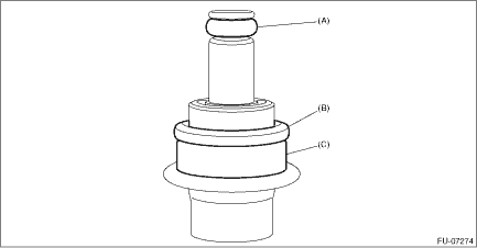 13. Remove O-ring (A), O-ring (B), and backup ring (C) from the pressure regulator.