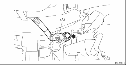 3. Disconnect the connector (A) from the knock sensor, and remove the knock sensor from the cylinder block.