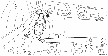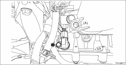 2. EXHAUST SIDE 1. Disconnect the ground terminal from battery sensor. NOTE 2. Lift up the vehicle. 3. Remove the under cover. Front Under Cover > REMOVAL 4. Disconnect the connector (A) from the camshaft position sensor, and remove the camshaft position sensor. • RH side