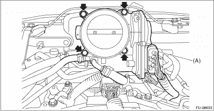 6. Disconnect the connector (A) from the throttle body, and remove the throttle body from the intake manifold. NOTE: Do not disconnect the preheater hose.