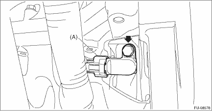 8. Disconnect the connector (A) from the crankshaft position sensor, and remove the crankshaft position sensor from the cylinder block.