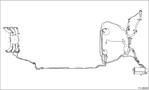 7. Remove the rear mud guard LH. Mud Guard > REMOVAL 8. Remove the purge pipe and purge hose. NOTE: Disconnect the quick connector as shown in the figure.