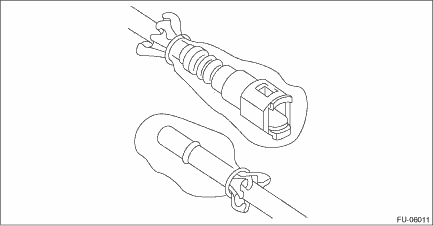 (2) To prevent from damaging or entering foreign matter, wrap the pipes and quick connectors with plastic bag etc. CAUTION: When reusing the retainer, do not disconnect the retainer from the connector.