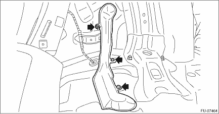 (3) Remove the trunk trim panel assembly - side on the RH side. (Sedan model) Rear Quarter Trim > REMOVAL (4) Remove the right side rear quarter trim. (OUTBACK model) Rear Quarter Trim > REMOVAL (5) Remove the evaporation pipe protector.