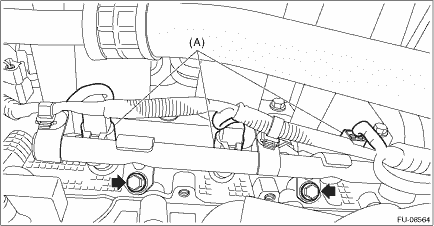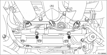 9. Disconnect the connector (A) from the fuel injector, and remove the bolts securing the fuel injector pipe to the cylinder head.