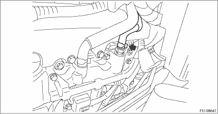2. Release the fuel pressure. Fuel > PROCEDURE 3. Disconnect the ground terminal from battery sensor. NOTE 4. Open the fuel filler lid and remove the fuel filler cap. NOTE: This operation is required to release the inner pressure of the fuel tank. 5. Disconnect the connector (A) and terminal (B) from the generator. 6. Disconnect connectors (C) and (D) from A/C compressor, and remove the generator cord from clip (E). 7. Remove the clip (F) securing the generator cord to the fuel pipe protector LH, and move the generator cord to the left side wheel apron.