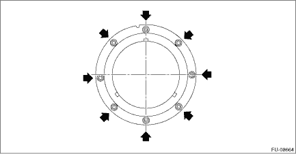 8. Remove the nuts which hold the fuel pump upper plate to the fuel tank.
