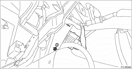 1. Disconnect the ground terminal from battery sensor. NOTE 2. Remove the trunk trim panel assembly - side on the RH side. (Sedan model) Rear Quarter Trim > REMOVAL 3. Remove the right side rear quarter trim. (OUTBACK model) Rear Quarter Trim > REMOVAL 4. Remove the fuel pump control unit. • Sedan model