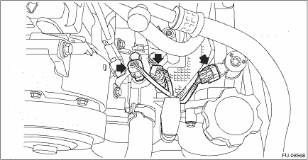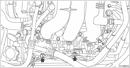 2. Release the fuel pressure. Fuel > PROCEDURE 3. Disconnect the ground terminal from battery sensor. NOTE 4. Open the fuel filler lid and remove the fuel filler cap. NOTE: This operation is required to release the inner pressure of the fuel tank. 5. Disconnect the brake booster vacuum hose.