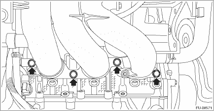 17. Remove the bolts securing the EGR pipe B to the EGR control valve.