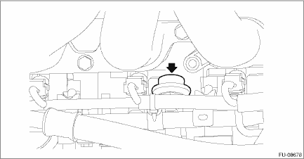 10. Remove the pulsation damper LH from the fuel injector pipe LH. CAUTION: • Be careful not to spill fuel. • Catch the fuel from the pipes using a container or cloth.