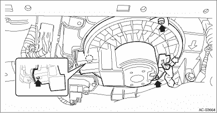 3. Remove the blower motor. (1) Disconnect the connector. (2) Remove the screws and detach the blower motor.