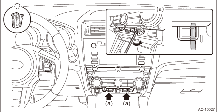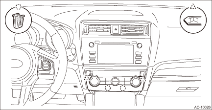 (2) Release the screws and clips, then detach the heater control assembly. CAUTION: • Insert a flat tip screwdriver wrapped with a protection tape into the position (a) shown in the figure, and move it in the arrow direction to remove the clip. When both clips are removed, pull out the heater control assembly by hand inserted through the space. • Be careful not to damage the clips and the control panel.
