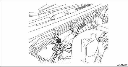 4. Remove the bolt, and remove the expansion valve - cooling. CAUTION: Seal the pipe and engaging part of expansion valve with a plug or vinyl tape to prevent foreign matter from entering. Preparation tool: Hexagon wrench: 4 mm (0.16 in)