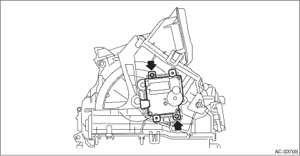 CAUTION: Before handling the airbag system components, refer to “CAUTION” of “General Description” in “AIRBAG SYSTEM”. General Description > CAUTION 1. Disconnect the ground terminal from the battery sensor, and wait for at least 60 seconds before starting work. NOTE 2. Remove the instrument panel assembly. Instrument Panel Assembly > REMOVAL 3. Remove the screws and detach the motor - actuator blower.