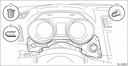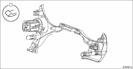 1. MID SWITCH CAUTION: Before handling the airbag system components, refer to “CAUTION” of “General Description” in “AIRBAG SYSTEM”. General Description > CAUTION 1. Set the tire to the straight-ahead position. 2. Disconnect the ground terminal from the battery sensor, and wait for at least 60 seconds before starting work. NOTE 3. Remove the driver’s airbag module. Driver’s Airbag Module > REMOVAL 4. Remove the steering wheel. Steering Wheel > REMOVAL 5. Remove the MID switch. Steering Wheel > DISASSEMBLY 2. TRIP RESET SWITCH 1. Disconnect the ground terminal from battery sensor. NOTE 2. Remove the cover assembly - instrument panel LWR driver. Instrument Panel Lower Cover > REMOVAL 3. Remove the visor assembly - lower. (1) Release the clips and claws. (2) Disconnect the connector and remove the visor assembly - lower. CAUTION: • Being careful not to damage the visor assembly - lower, slowly remove the clips and claws one by one from the right and left edges of visor assembly - lower. • When using a clip remover, wrap it with protective tape or cloth.