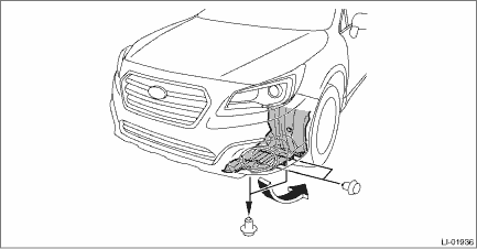 1. Disconnect the ground terminal from battery sensor. NOTE 2. Remove the clips, and turn over the mud guard - front.