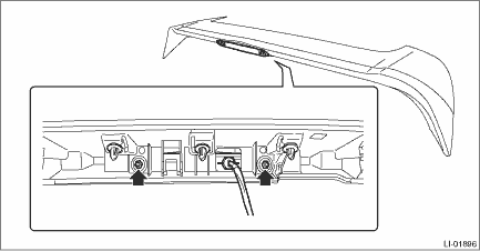 2. OUTBACK MODEL 1. Disconnect the ground terminal from battery sensor. NOTE 2. Remove the trim panel - rear gate. Rear Gate Trim > REMOVAL 3. Remove the roof spoiler. Roof Spoiler > REMOVAL 4. Remove the nuts and remove the light assembly - high-mounted.