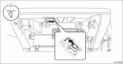 1. GLOVE BOX LIGHT 1. Disconnect the ground terminal from battery sensor. NOTE 2. Remove the pocket assembly. Glove Box > REMOVAL 3. Remove the light - pocket cover. CAUTION: When using a flat tip screwdriver, apply protective tape or cloth and be careful not to cause damage. (1) Release the claws. (2) Disconnect the connector, and remove the light - pocket cover. 4. Release the claws, and remove the light - pocket.