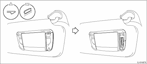 NOTE: • The vanity mirror light is integrated into the sun visor assembly. Replace the sun visor assembly if faulty. Sun Visor > REMOVAL • Do not remove the sun visor assembly if removing the bulb only. 1. Disconnect the ground terminal from battery sensor. NOTE 2. Remove the sun visor assembly. Sun Visor > REMOVAL 3. Release the claws and remove the lens and vanity mirror light bulb. CAUTION: • Use a dry clean cloth so that no grease or water adheres to the glass portion of the bulb. • When using a flat tip screwdriver, apply protective tape or cloth and be careful not to cause damage.