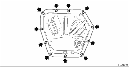 1. OIL PAN AND STRAINER 1. Disconnect the ground terminal from battery sensor. NOTE 2. Lift up the vehicle. 3. Drain the engine oil. Engine Oil > REPLACEMENT 4. Remove the front exhaust pipe. Front Exhaust Pipe > REMOVAL 5. Remove the bolts which secure oil pan to oil pan upper.