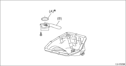 6. Insert an oil pan cutter blade into the gap between oil pan upper and oil pan, and remove the oil pan. CAUTION: Do not use a screwdriver or similar tool in place of oil pan cutter. 7. Remove the oil strainer from the oil pan upper.