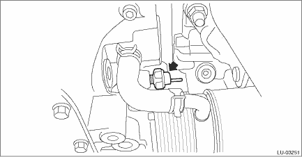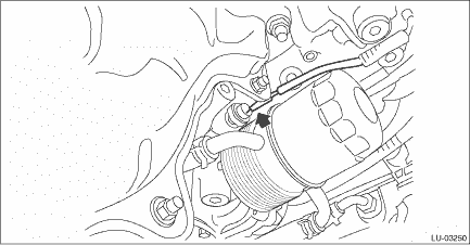 CAUTION: If the engine oil is spilt over exhaust pipe or the under cover, wipe it off with cloth to avoid emission of smoke or causing a fire. 1. Disconnect the ground terminal from battery sensor. NOTE 2. Remove the under cover. Front Under Cover > REMOVAL 3. Drain the engine oil. Engine Oil > REPLACEMENT 4. Disconnect the terminal from oil pressure switch.