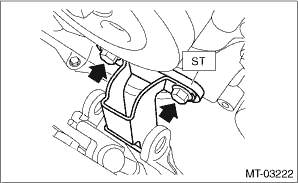 34. Remove the ST (ENGINE HANGER). 35. Separate the battery cable clip to remove the bracket.