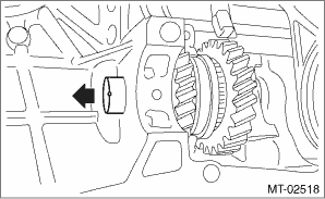 1. Remove the manual transmission assembly from the vehicle. Manual Transmission Assembly > REMOVAL 2. Remove the back-up light switch and the neutral position switch. Switches and Harness > REMOVAL 3. Remove the transfer case together with the extension case assembly. Transfer Case and Extension Case Assembly > REMOVAL 4. Remove the transmission case. Transmission Case > REMOVAL 5. Remove the drive pinion shaft assembly. Drive Pinion Shaft Assembly > REMOVAL 6. Remove the main shaft assembly. Main Shaft Assembly > REMOVAL 7. Remove the front differential assembly. Front Differential Assembly > REMOVAL 8. Shift into 4th. 9. Remove the snap ring.
