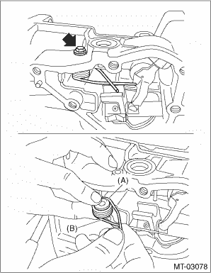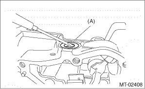 1. Remove the manual transmission assembly from the vehicle. Manual Transmission Assembly > REMOVAL 2. Remove the back-up light switch and the neutral position switch. Switches and Harness > REMOVAL 3. Remove the transfer case together with the extension case assembly. Transfer Case and Extension Case Assembly > REMOVAL 4. Remove the extension case assembly. 5. Remove the center differential and transfer driven gear as a unit. Transfer Driven Gear > REMOVAL 6. Pull out the straight pin.