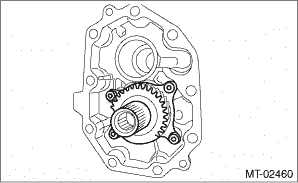 1. Remove the manual transmission assembly from the vehicle. Manual Transmission Assembly > REMOVAL 2. Remove the back-up light switch and the neutral position switch. Switches and Harness > REMOVAL 3. Remove the transfer case together with the extension case assembly. Transfer Case and Extension Case Assembly > REMOVAL 4. Remove the extension case assembly. 5. Remove the transfer driven gear. Transfer Driven Gear > REMOVAL 6. Remove the transfer drive gear.