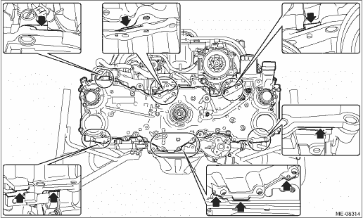 14. Remove the O-rings from cylinder head RH, cylinder head LH, cylinder block LH and oil pan upper.
