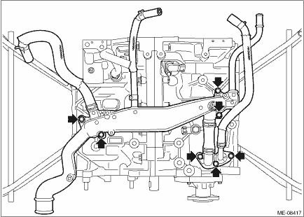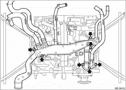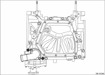 10. Remove the bolts securing the water pipe assembly and PCV connector to the cylinder block, and remove the water pipe assembly and PCV connector as a set from cylinder block. • CVT model