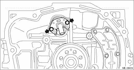 12. Remove the knock sensor. Knock Sensor > REMOVAL 13. Remove the PCV valve. PCV Valve > REMOVAL 14. Remove the crankshaft position sensor plate with drive plate. (CVT model) Drive Plate > REMOVAL 15. Remove the clutch disc and cover. (MT model) Clutch Disc and Cover > REMOVAL 16. Remove the crankshaft position sensor plate with flywheel. (MT model) Flywheel > REMOVAL 17. Remove the bolts securing the crankshaft position sensor holder from the cylinder block LH, and remove the crankshaft position sensor with crankshaft position sensor holder.