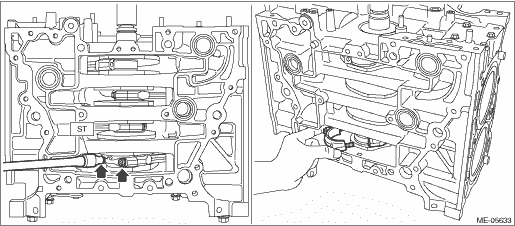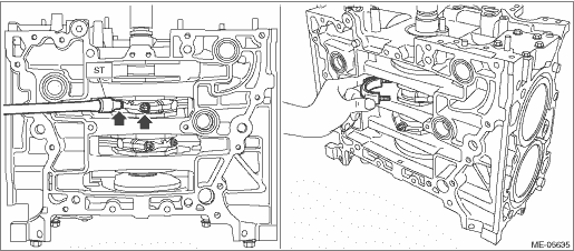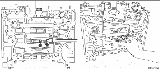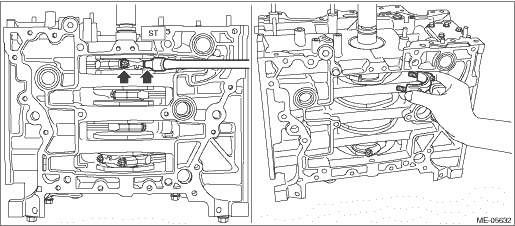 19. Set the cylinder block so that the oil pan is on the upper side, remove the ST1, ST2, ST3 and ST4 from cylinder block and oil pan upper.