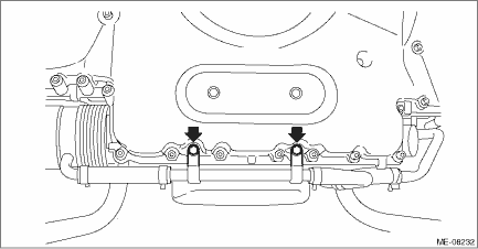 NOTE: When replacing a single part, perform the work with the engine assembly installed to body. 1. When working on the vehicle NOTE: When working on the vehicle, perform the following steps also. (1) Remove the radiator. Radiator > REMOVAL (2) Remove the front exhaust pipe. Front Exhaust Pipe > REMOVAL (3) Remove the engine mounting. Engine Mounting > REMOVAL 2. Drain the engine oil. Engine Oil > REPLACEMENT 3. Remove the V-belts. V-belt > REMOVAL 4. Remove the crank pulley. Crank Pulley > REMOVAL 5. Remove the oil cooler pipe from the chain cover.