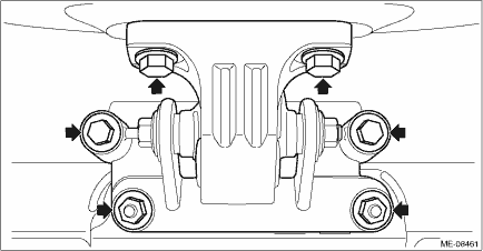 36. Remove the bolts and nuts securing the front mounting bracket to the cradle and the bracket, and remove the front cushion rubber together with the front mounting bracket from the chain cover.