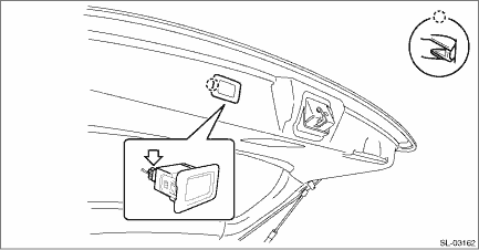 1. Disconnect the ground terminal from battery sensor. NOTE 2. Remove the power rear gate inner switch. (1) Release the claws and pull out the power rear gate inner switch rearward. NOTE: Insert a flat tip screwdriver wrapped with protective tape into the slit on the left. (2) Disconnect the connector and remove the power rear gate inner switch.