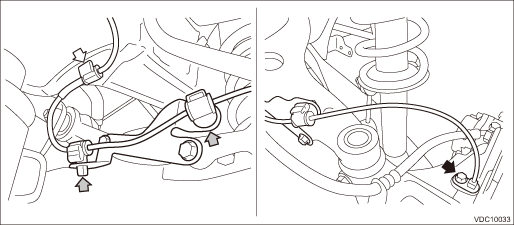 (2) Remove the harness clamp and bolts, and remove the rear ABS wheel speed sensor from the rear axle housing. • Sedan model