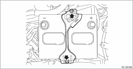 1. BATTERY 1. Disconnect the ground terminal from battery sensor. NOTE 2. Remove the battery sensor. Battery Sensor > REMOVAL 3. Disconnect the positive terminal of battery. 4. Remove the battery holder from the battery box.