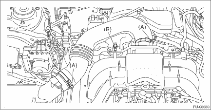 2. Disconnect the ground terminal from battery sensor. NOTE 3. Loosen the clamp (A) securing the air intake boot. 4. Remove the bolt (B) securing the air intake boot to the collector cover bracket.