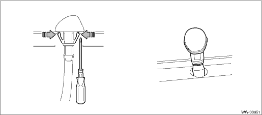 5. Remove the nozzle - windshield washer. (1) Push the claw using a flat tip screwdriver, etc. (2) When the nozzle - windshield washer lifts up, pull out the nozzle - windshield washer using a clip remover, etc. (3) Disconnect the hose - windshield washer, and remove the nozzle - windshield washer.