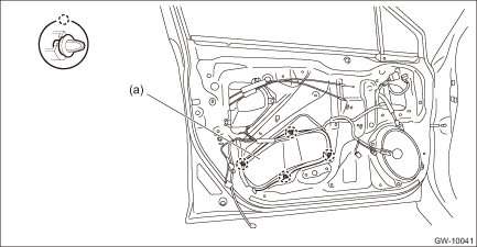 1. Disconnect the ground terminal from the battery sensor, and wait for at least 60 seconds before starting work. NOTE 2. Remove the trim panel - front door. Door Trim > REMOVAL 3. Remove the sealing cover - front door. Front Sealing Cover > REMOVAL 4. Remove the front door inner pad (a). CAUTION: If it is removed with an excessive force, the panel assembly - front door may be deformed. Also, if the clip is damaged, replace it with a new clip.