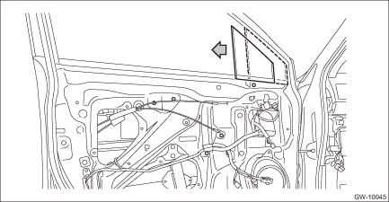 7. Remove the glass - front door partition. (1) Remove the bolts and screws, and then remove the running channel - front door and the sash assembly - partition.