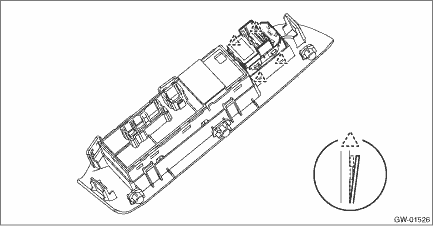 1. Disconnect the ground terminal from the battery sensor, and wait for at least 60 seconds before starting work. NOTE 2. Remove the trim panel - front door. Door Trim > REMOVAL 3. Remove the panel - power window main switch. Power Window Control Switch > REMOVAL 4. Release the claws, and then remove the switch - door mirror from the panel - power window main switch.