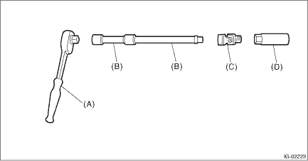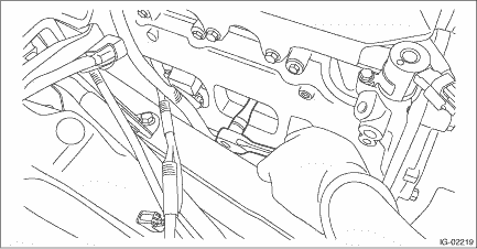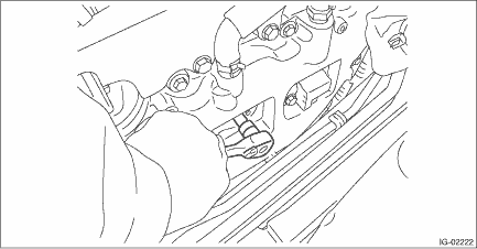 2. Disconnect the ground terminal from battery sensor. NOTE 3. Remove the air cleaner case. Air Cleaner Case > REMOVAL 4. Remove the engine harness stay (A). 5. Disconnect the connector (B) from ignition coil. 6. Remove the ignition coil. NOTE: Turn the #5 ignition coil to remove it.