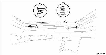 2. DEFLECTOR ASSEMBLY 1. Open the lid assembly - sunroof and the sunshade assembly. 2. Remove the deflector assembly - sunroof. (1) Remove the spring from the rail assembly - sunroof.
